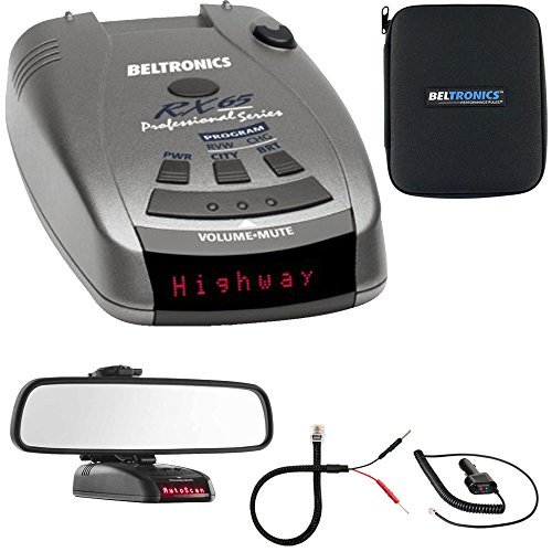 Product Description: If you are as serious about safety as you are about driving, then you need the Professional Series RX 65. Featuring extreme sensitivity to all Radar and Laser bands with over 10 times the range of other imported detectors. Controlling the alerts is right at your fingertips using the included SmartPlug power cord. Want to take the detector with you? No problem, we include the quick release windshield mount and travel case too. Featuring patented Mute and AutoMute technology on the included SmartPlug power cord allows you to silence alerts. Red Display. Product Details: 10x Range vs. Imports All Radar and Laser Band Coverage Multi-Sensor Laser Protection Digital "POP" Radar Alert Advanced AutoScan" Processing Digital Signal Processing (DSP) Virtually Eliminates False Alerts Clear Digital Voice or Audio Alerts Easy-to-Use Options and Controls 7 Selectable Features Ultra-Bright High Definition Display Brightness Control with Dark Mode One year limited warranty Product Specifications: Operating Bands-X-band: 10.525 GHz +/- 25 MHz-K-band: 24.150 GHz +/- 100 MHz-Ka-band: 34.700 GHz +/- 1300 MHz-Ku-band: 13.400 GHz +/- 25 MHz-Laser: 904nm, 33MHz bandwidth Radar Receiver/Detector Type-Superheterodyne, VTO-Scanning Frequency Discriminator-Digital Signal Processing (DSP) Laser Detection-Quantum Limited Video Receiver-Multiple Laser Sensor Diodes Display Type-280 LED Alphanumeric-Bar Graph or Tech Display-3 Levels of Brightness, plus Dark Mode Power Requirement-12VD...