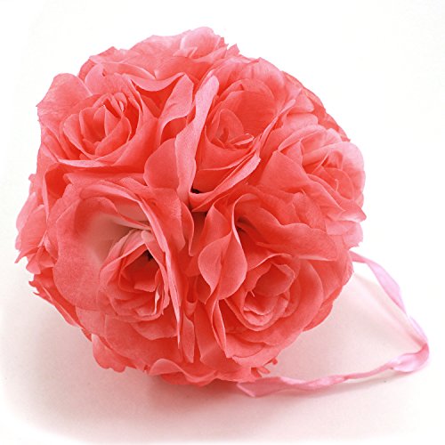 6.5 "シルクのように見えます。フラワーローズPomanderキスをするボールウェディングパーティー装飾コーラル