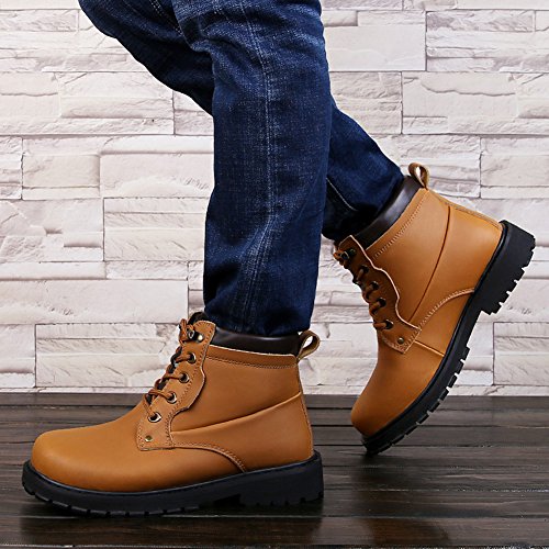 メンズブーツアウトドアシューズウォーキングシューズコンバットブーツジャングルブーツワークブーツショートブーツプラスカシミア (27.5 cm, イエロー)