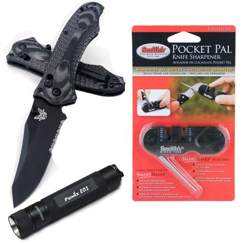 このセットには下記のものを含んでいますBenchmade 950sbkリフト・オズボーン折りたたみナイフ。Smith 's pp1ポケットPal多機能シャープナー。FENIX e01コンパクトLEDフラッシュライトです。Benchmade 950sbkリフト・オズボーン折りたたみナイフ:クラウン部分950sbkが設定されていることをブラック仕上げ部分的に鋸歯状の刃。ブレードを逆のTANTO 154 cmステンレススチールbladeis手首反転するように開いて両サイド親指スタッドまたは軸のロックを解除しやすい、超高速導入されている場合があります。ハンドルには420jライナー、強度および剛性のためにopen-buildデザインを簡単にクリーニングとメンテナンスを行うことができます。のリバーシブルtip-upポケットクリップが左右の手には運べます。Smith 's pp1ポケットPal多機能シャープナー。お洒落でスリム、SMITHのポケットPal多機能ナイフ研ぎバックパッカーに最適です、ハイカー、ハンター、漁師ブレードを確実にすることは、場所では、最も鮮明なエッジがあります。折りたたみdiamond-coatedロッド。鋸歯状のブレードに、シャープに最適です。diamond-coatedロッドの鋸歯と標準エッジに配置することができます。カーバイドブレード迅速に設定しエッジの可能性があります。セラミック石してあなたの鋭いエッジの可能性があります。折り目の付いた機能アウトして、テーパーラウンドdiamond-coatedロッドのシャープ鋸歯と標準エッジ、事前カーバイドブレードの退屈な端まで移動させ、特別に迅速に動作状態に戻す形セラミック石の鮮やかな仕上がりになっています。カーバイドとはブレード、セラミック石はリバーシブルおよび交換が可能、拡張シャープLifeを使用することができます。大きさはわずか3 – 1 / 2インチの長さおよび幅1インチ、重量はわずか1オンス。カーバイドのブレードを提供クイックエッジ設定機能を破損したり切れ味が悪くなったナイフ。これらのブレードはまっすぐなエッジのみで使用するように設計され、リバーシブルと交換が可能です。FENIX e01コンパクトLED懐中電灯:を使用して完璧なポータブルミニLED懐中電灯、僅かなボリュームの重量は、完全にあなたの財布、ポケット、または単ににすることがあなたのキーチェーン。