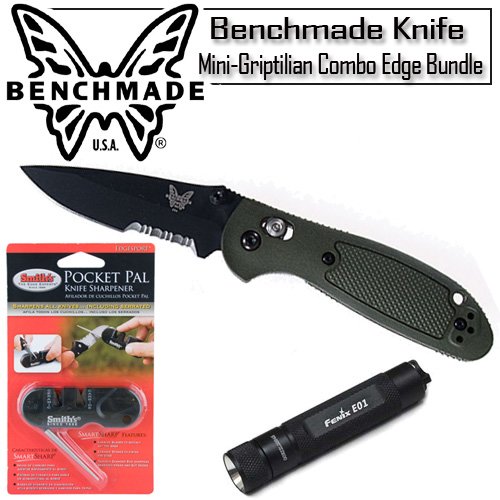 Benchmade 556sbkod mini-griptilianコンボエッジオリーブ折りたたみナイフとナイフ削り器とミニLED懐中電灯