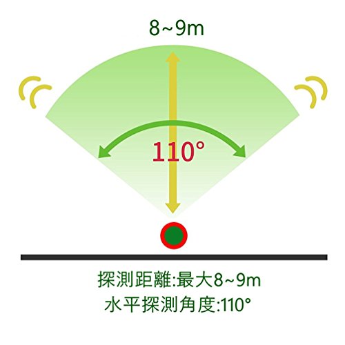 1.検知距離:最大8~9m(動物の大きさに応じます) 赤外線センサー検知角度: 水平に110° (天候と環境に応じます)