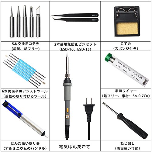 - 【鉛フリーのコテ先と半田ワイヤー】環境保護のためにアップグレードした鉛フリーの銅製コテ先はより耐腐食、耐酸化で、伝熱スピードに影響を与えなくて、鉛フリー半田ワイヤーなので、作業中悪臭と毒ガスが発生しません。交換コテ先:K、I、B、C、D型