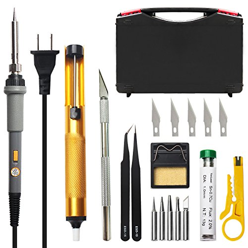 Beneges【2018新型】鉛フリー はんだごて セット セラミックヒーター 18-in-1 鉛フリー半田ワイヤー ON/OFFスイッチ 110V/60W 温度調節 ハンドツールボックス付き 電子工作