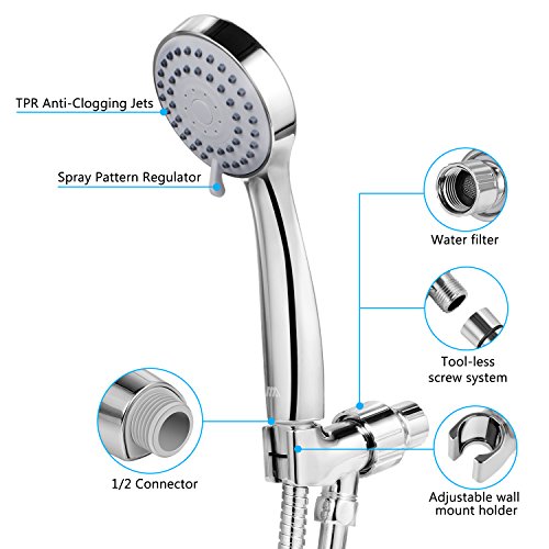 benewell高圧力ハンドヘルドシャワーヘッドホース???簡単なインストール シルバー