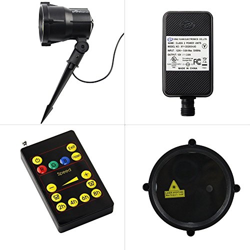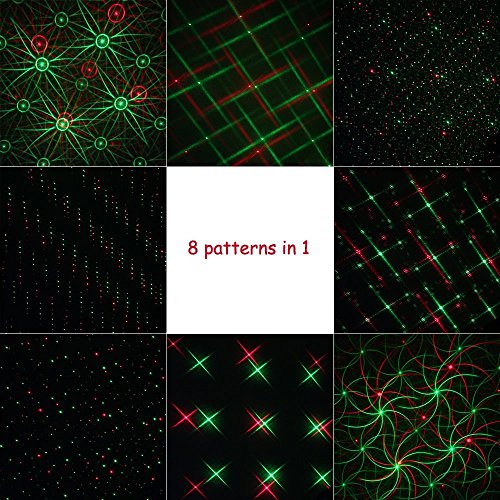 - 2 colors- red & green lasers,single color,flash, static/moving mode for choice