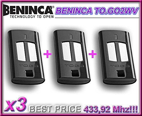 3 x Beninca TO。Go 2 WVリモートコントロールトランスミッタ、433.92 MHzローリングコードKeyfobs3 x top品質の元BENINCAリモートコントロールfor the best価格