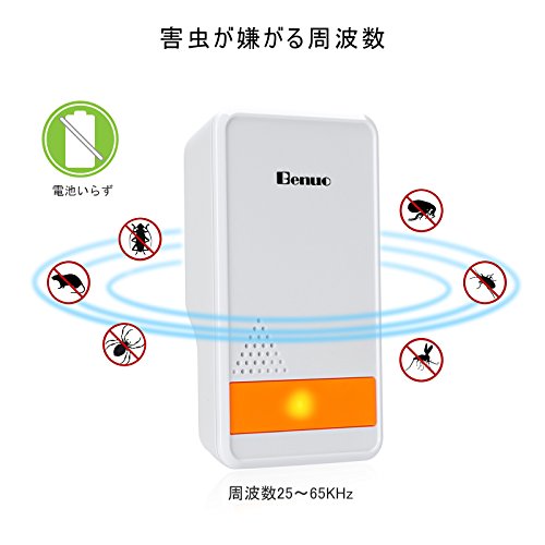 Benuo 超音波式害虫駆除機 ネズミ撃退器 害虫退治 コンセント式 ネズミ ゴキブリ 蚊 クモなど対応 子供やペットにも安心 省エネ コンパクト 台所・厨房・食料品店・倉庫など適用 2セット