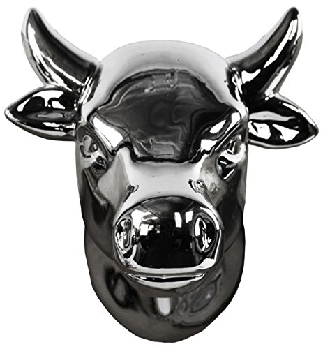 Benzara BM133601 Fine Crafted Ceramic Cow Head Wall Decor - Silver - 6 x 6 x 6 in.