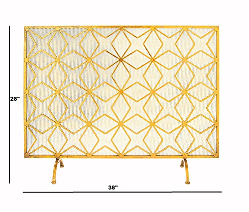 UMA企業のホーム暖炉と炉床艶のある鉄のダイヤモンド織り画面対に華やかなタッチを追加します。この頑丈な鉄の画面は正常に機能アクセントユニークな、スターとダイヤモンド織りメッシュバリアの上にあるすべての火花を停止入力しから残り火を表示すると床に部屋と方法を説明し、仕上げ。いいえアセンブリは必要ありません。寸法: 38 W x 9d X 28h。。鉄製の建設です。ゴールド仕上げをしました。特徴1パネルが採用されています。ユニークな、ダイヤモンド織りのデザインが施されています。