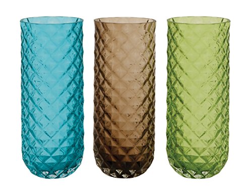 Check out this amazing glass vase 3 assorted that will be a great addition to your room space. Made of quality glass this vase is sure to last for long. This glass vase features protruding texture and comes in complete antique color finish that adds to its beauty. Classy color palette of this vase will accentuate well with all kinds of interiors and steal the spotlight. This vase can be added to your showcase space else place on a light colored table top. The glass vase will give the space around a vintage feel.