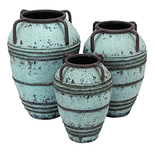 Features: Ideal for use as decor pieces offers lasting, hassle-free usage Set of three vases in a matching design Exemplifies finesse and minimalistic style Add old world charm to your home decor with this Metal Vase S/3 26', 23', 19'H. This set includes three vases in a matching design, which are ideal for use as decor pieces. This set of vases makes for a stunning addition to entryways with its old-world, classic appeal. These elegant vases have a dual tone finish of antique white with antique brown detailing, which gives a rustic, vintage look. The weathered finish adds to the visual appeal of the set, and makes it an easy addition to modern or traditional decor setups. Stylishly decorated with a ring pattern along the vase body, this set exemplifies finesse and minimalistic style. This set is designed from premium grade metal and offers lasting, hassle-free usage. It comes with following dimensions 18 ' W x 18 ' D x 26 ' H 15 ' W x 15 ' D x 23 ' H 13 ' W x 13 ' D x 19 ' H.