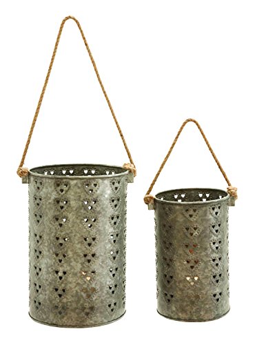 - Benzara Metal Galvanized Lantern with Intricate Design, Set of 2