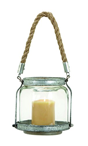 Exemplifying simplicity, this metal glass lantern offers versatile usage. The lantern is shaped like a jar and has minimalistic detailing for a charming, rustic appeal. This elegantly designed lantern makes for a wonderful decor accent for rustic-themed spaces or casual decor and can be hung from hooks trough the loop. The clear glass shade in the lantern is supported on a metal base plate which also holds the candle securely. With its flattened design, the base of this lantern makes it's y to place the lantern on a tabletop and prevents wobbling or shifting. Securely held by metal strips and clasps, this lantern has a sturdy design to offer lasting, trouble- usage. Made from tough material, this lantern is sturdy and durable, offering years of service in use. This is an ideal gifting option too. .