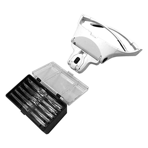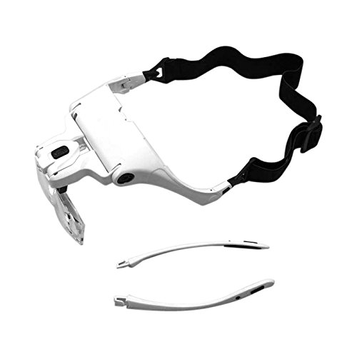 ●頭に装着する拡大鏡●レンズ交換で倍率変更可能(1倍、1.5倍、2倍、2.5倍、3.5倍)●LED照明付き、レンズアングル各所で可変可能●大型レンズ搭載●サイズ:本体(約)幅140*高さ70mm*つるの長さ180mm●重量:約55g