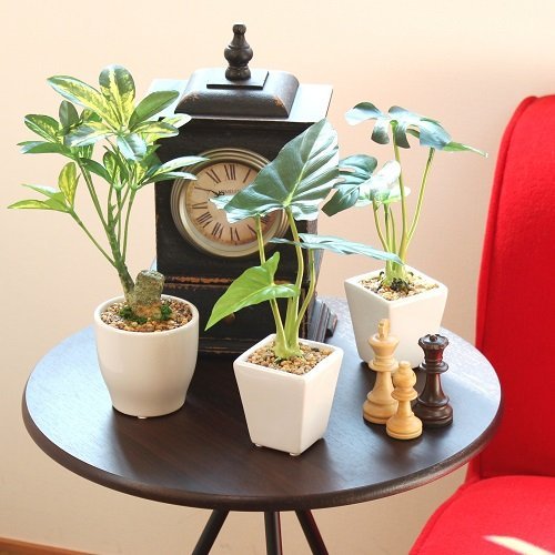 - 通常の観葉植物を育てるには、水やり、肥料等、大変な手間がかかります。人工観葉植物は汚れやカビがつきにくく、枯れる心配がありません。