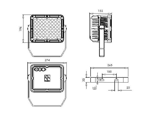 LED flood light. Power: 115Watt. LED chip: CREE Xlamp XP-G. Beam angle: 10, 30 60degree. Luminous flux: 9000lm. Input voltage: DC36V. IP rating: IP67. Application Lights for billboard, architecture, building walls, commercial building projection. Lights for canopy,corridor,window,archway, court,parking lot,gymnasium,dock,park. Lights for bar, disco, pub, club, show and events, tree decoration,sculpture, Other indoor lighting or other outdoor lighting.
