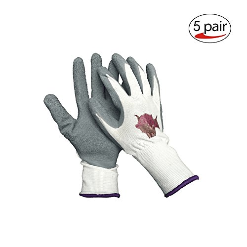BesToop コンフォートグリップグローブ 保護手袋 農業 Mサイズ 5双パック、突き刺し防止、防水、スベリ止め、ウェットとドライの環境 植え付け、家事、作業用手袋、運送、荷物作業、園芸用手袋 (ホワイト 5双セット) (M)