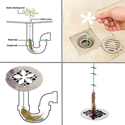 besegoシャワーDrainヘアキャッチャー、最高のホームツール – Drain ClogリムーバーFlowerクリーニングチェーンのキッチン、バスルーム、トイレSewer Clog Dredge 10PCS ホワイト 513170
