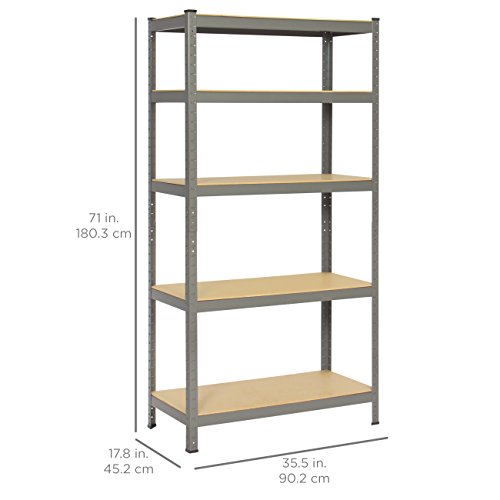 Best Choice Products 72 " heavy-duty 5レベルガレージシェルフメタルストレージラックユニットW /調節可能なshelves-グレー/ブラック