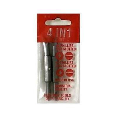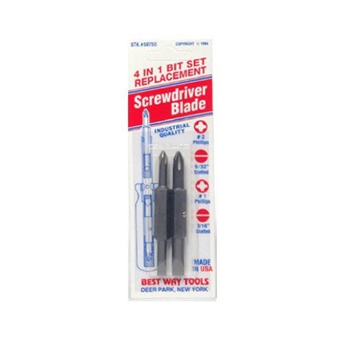 Best Way Tools Included in set are 2 screwdriver replacement bits. The first bit on 5/16' diameter shank, 2-3/4' long, has #2 philips by 1/4' slotted. The second but 5/16' diameter shank, 2-3/4'' long, has #1 philips by 3/16' slotted. Both screwdriver bits have retention ball so they will fit securely into screwdriver shaft. Bits are machined from S2 tool steel, heat treated, and have a blast finish. Designed to replace bits in a 4 in 1 screwdriver.