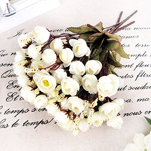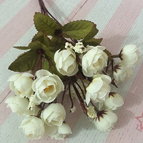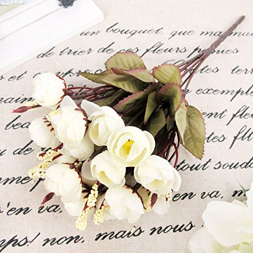 人工花ブーケCamellia – ホワイト – シルク花人工ローズ花のホームデコレーション、ブライダルウェディングブーケ、誕生日花BunchホテルパーティーGarden Floral Arrangements Decor