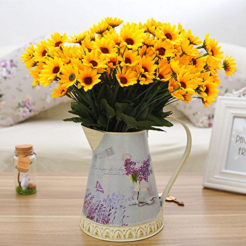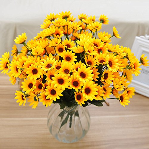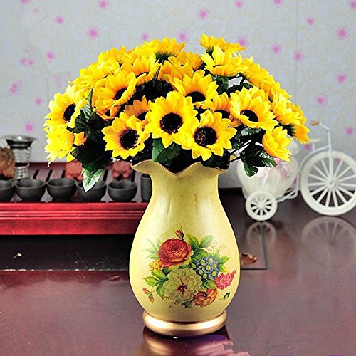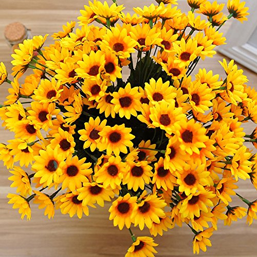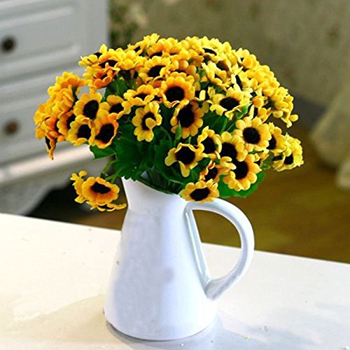 人工花 – ひまわり14 Heads – シルクブーケ花人工ローズ花のホームデコレーション、ブライダルウェディングブーケ、誕生日花BunchホテルパーティーGarden Floral Arrangements Decor
