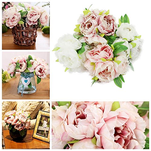 人工花 – ピンク – シルク花人工ローズ花のホームデコレーション、ブライダルウェディングブーケ、誕生日花BunchホテルパーティーGarden Floral Arrangements Decor
