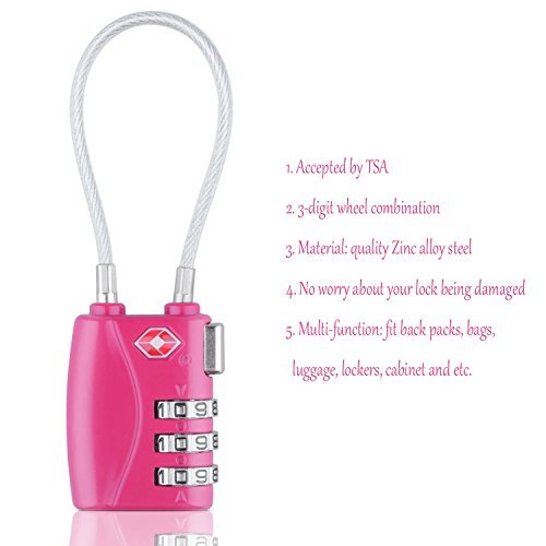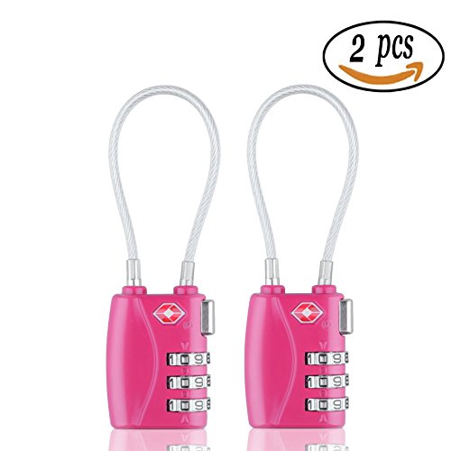 TSA Approved Luggageロック、bestga 3桁ケーブル組み合わせ荷物ロック盗難保護耐久性旅行荷物ロック、ロックバックパック、キャビネットロック、南京錠、スーツケースロック – 2パックレッド
