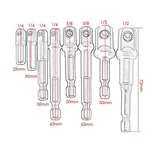 Bestgle 8 ピース セット 六角シャンク ドリル ビット ソケット スリーブ エクステンションバー インパクトレンチツール 1/4" 3/8" 1/2" ソケットアダプターセット