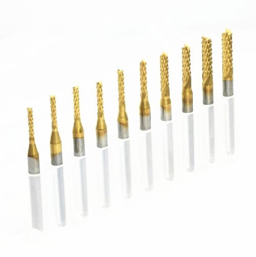 Bestgle 10ピース0.8mm-3.175mmエンドミル 彫刻ビット超硬バータングステンバー リューター ビット チタン・コート・カーバイド 高速度 工具 切削 研磨用