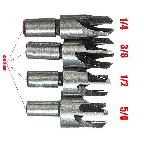 - このホールソーセットは4本の標準プラグカッターと4本の四歯面取りカッターとなります。プラグカッター数量:8本入。サイズ:1/4 "、3/8"、1/2 "、5/8"(6.3mm / 9.5mm / 12.7mm / 15. 8mm)。