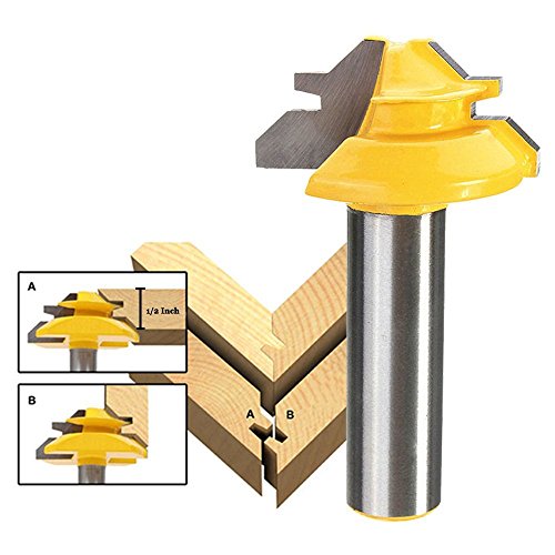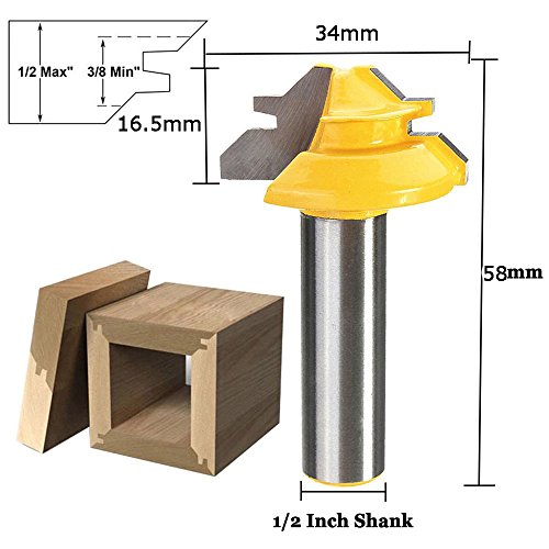 Bestgle 1ピース ウッドワーカーロックマイタールータービット 45度幅1-3/8"木工ドリルビット 12.7ミリメートル(1/2") シャンク ほぞカッター ルータービット木工用 イエロー
