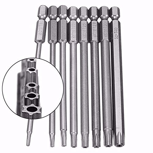 Bestgle 8ピース トルクスドライバー トルクス星ネジ用ビットセット 100mm 六角軸 6.35mm T8-T40 ドリル ビット工具