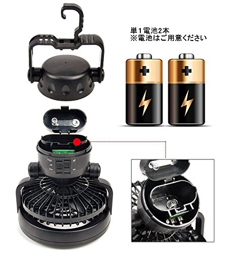 - 【電池】単一電池2本(電池は別途ご用意ください) 【連続使用時間(目安)】ライトのみ:約150時間、扇風機のみ:約32時間、ライト+扇風機:約16 時間 ※アルカリ電池使用時。使用状況によって異なります