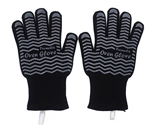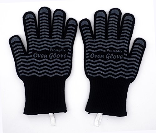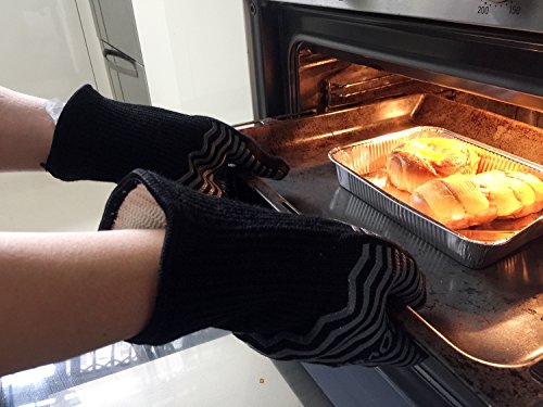 besttoop熱抵抗グローブwith Siliconストリップ保護コーティングon指&手のひら、料理for BBQグリル、Bakingなど、1ペア ブラック GP21-BB
