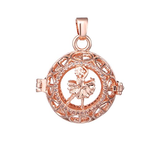 BeydodoハーモニーボールネックレスwithチャイムHollow Round Dancing Girlホワイトキュービックジルコニア