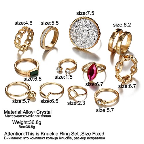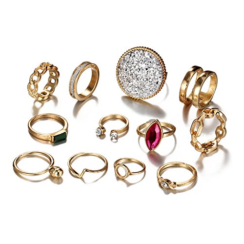 BeydodoレディースKnuckleリングセット12ピースチェーンリングエンハンサーキュービックジルコニアスタッカブルリングゴールド
