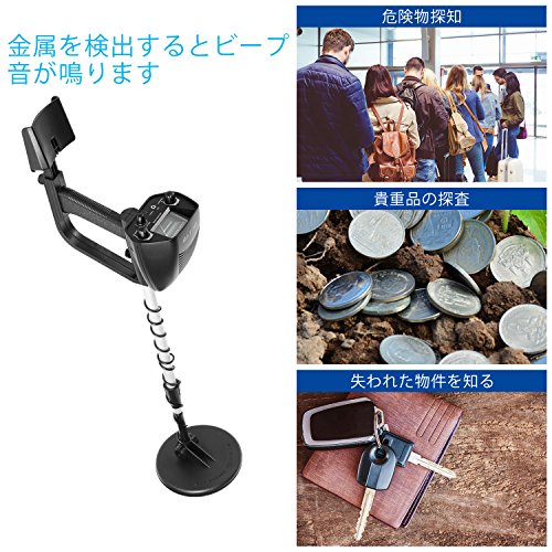 【すぐに高感度の検出器が鳴ります】 金属探知器は大きなプローブでより高感度です, LCDの画面または音量で、どのタイプの金属が検出されているか、信号の強度 【軽量で持ち歩き簡単】 総重量3 kgと持ち易く、女性の方でも簡単に扱えます。単に水平にする,家の壁の鉄筋部分の調査やなくし物など素早く探し出せます 【防水ダイヤル & 調節可能なハンドル】浅い水に金属探知機を使用できます。女性や子供のように、ほとんどのユーザーのハンドルの長さを調整できます。 【音量調整】スピーカーとヘッドフォンの音量を調整出来ます。ヘッドフォンに接続することができます(ヘッドフォンは付属していません) 【地面に埋め込まれた金属物体を探索します】 この検出器は一般的で非常に使いやすいものです。コイン、遺物、ジュエリー、金、銀器をどこでも見つけることができます。セキュリティチェック、野外宝探し、金属検査などに広く使用されています。