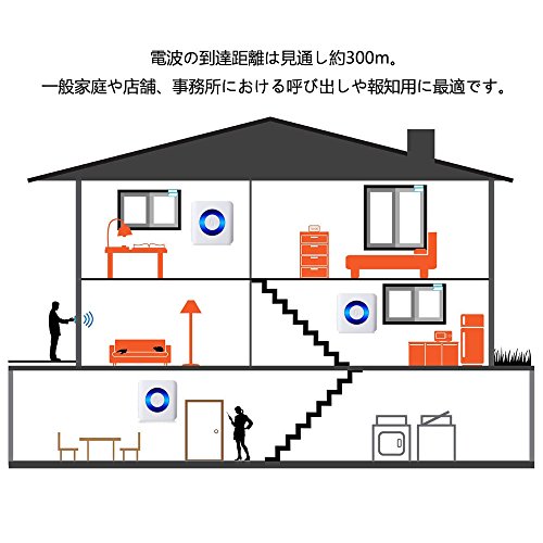 - 使用可能距離:電波到達距離は驚きの約300M!一階と二階に設置可能、どこにいてもよく聞こえます。
