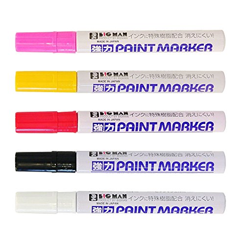 Bigman 強力ペイントマーカー 5本セット[白、黒、赤、黄色、ピンク各1本]