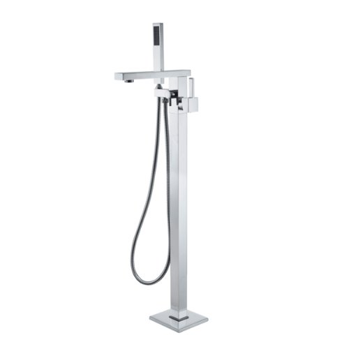 モダン自立浴槽フィラー蛇口とシャワーシステム床マウントwithハンドヘルドシャワーとシャワーホースクローム仕上げ