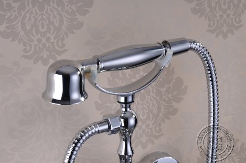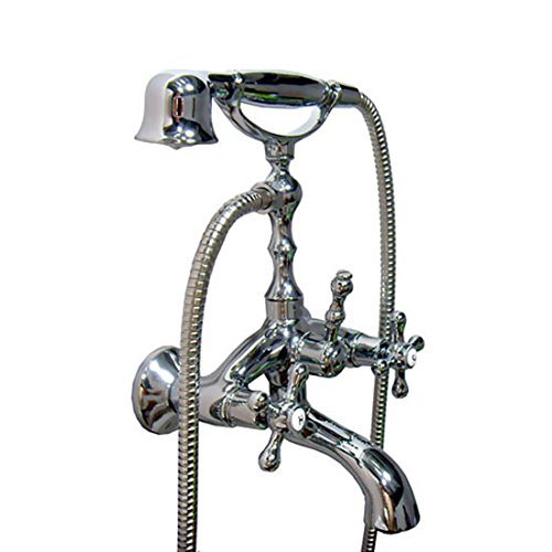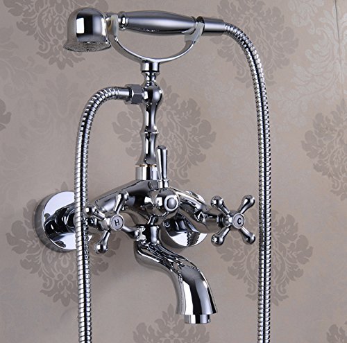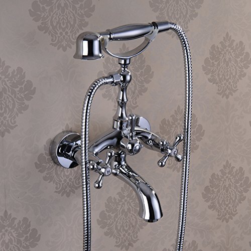 Chrome Finish Bathroom Wall Mounted Mixer Tub Filler Shower Faucet Sets Telephone Shaped Handheld Shower Tub Faucet Double Crosss Handle Control Clawfoot Bathtub Tap [並行輸入品]