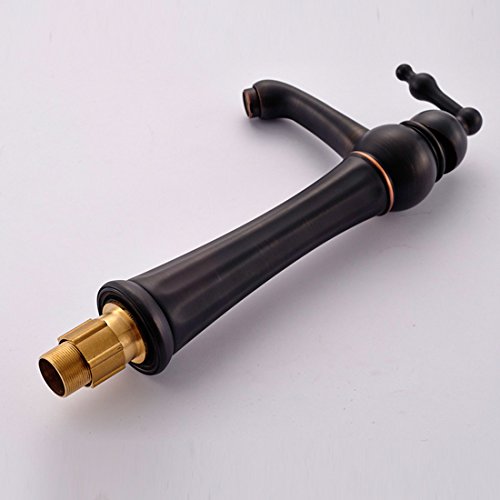 デッキマウントシングルハンドルオイルはブロンズ仕上げセンターセットバスルームシンク蛇口シングルハンドル