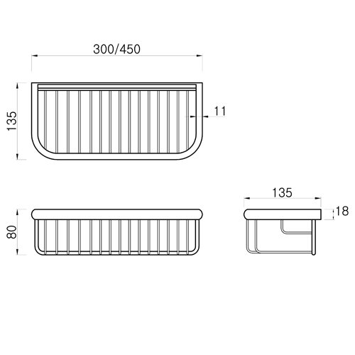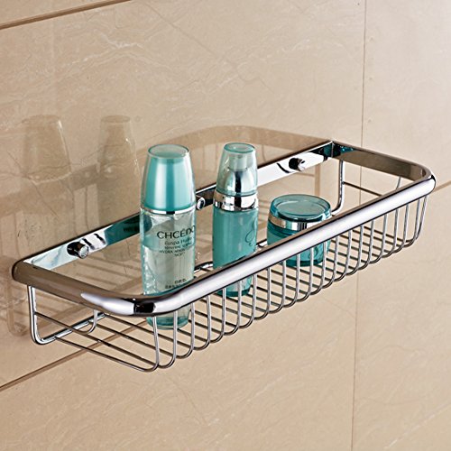 ソリッド真鍮製品壁マウント長方形シャワーワイヤバスケットシャワーソープキャディコスメティックホルダー 45cm*13cm*7cm シルバー A018-45