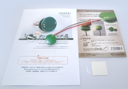 電源と信号線を繋ぐだけで、直ぐにタッチセンサ(スイッチ)として利用する事ができ、直径約23mm(十円玉サイズ)の円筒状で上部がセンサになっています。