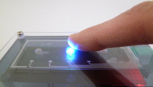 透明電極フィルムをセンサとした静電容量式のタッチスイッチです。