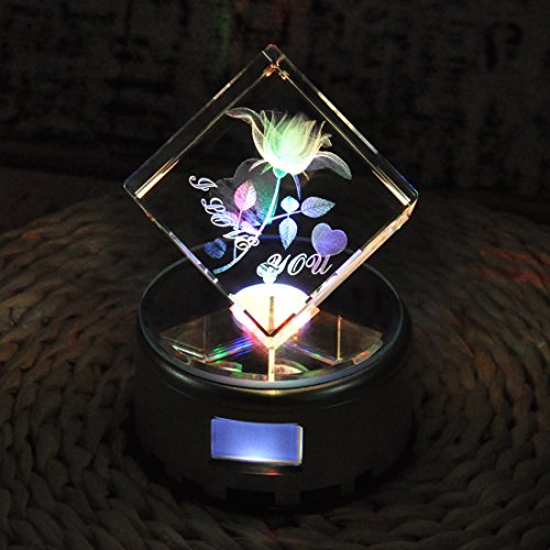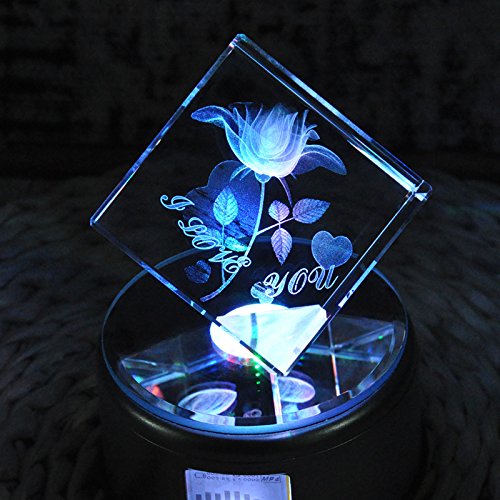 Biutee 第二世代 クリスタルオルゴール "I love you" MP4 七彩ライト 光るバラ USB ホタル 2GBSDカード付き ミュージックランプスタンド ぜんまい 付き 回転できる シングルサイクル 誕生日 結婚記念日 結婚祝い 卒業祝い バレンタインデープレゼント 女性 プレゼント クリスタルフラワー (C)