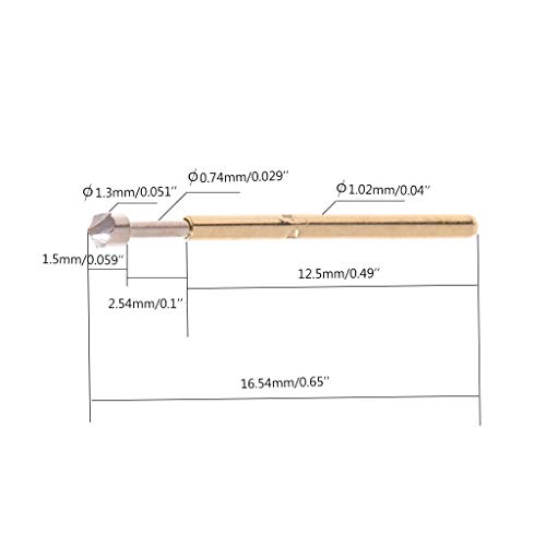 Biuuu 100個スプリングテストプローブポゴピンP75-LM2直径1.02mm長さ16.5mm