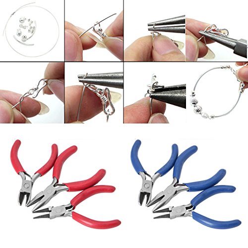 Biuuu 3本の手工芸ミニ混合ノーズプライヤーカッタービーズジュエリー修復ツールを作る新しい(ランダム配送)